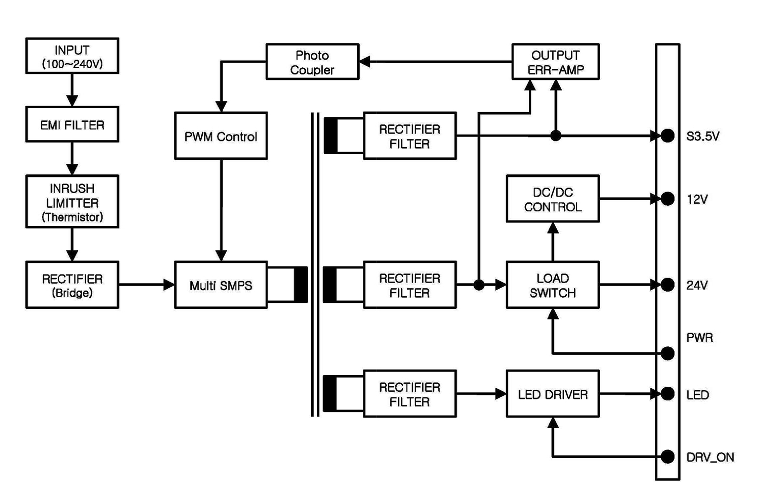 - на выходе источника другой набор питающих напряжений (так, для драйверов LED используется напряжение +65..87 VDC, а дежурное составляет всего 3,5 вольта);