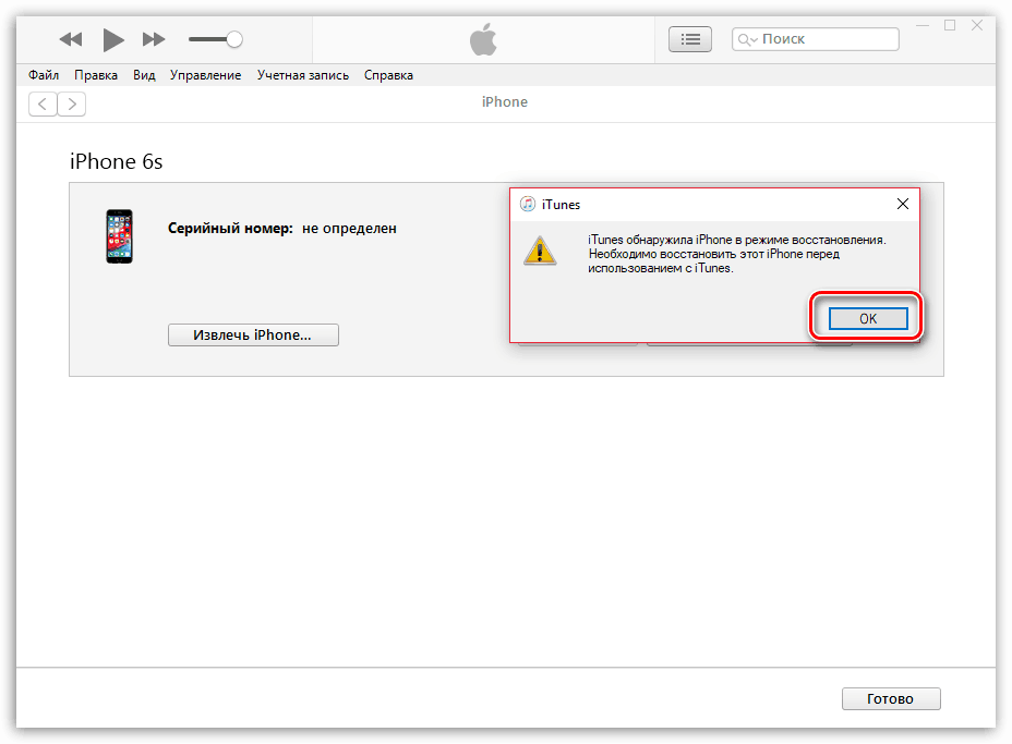 - восстановление при помощи iTunes. Можно провести воссоздание смартфона с предварительным формированием резервной копии. Его подключают к персональному компьютеру и запускают приложение, после обнаружения девайса нажимают на «Обзор» и «Восстановить»;