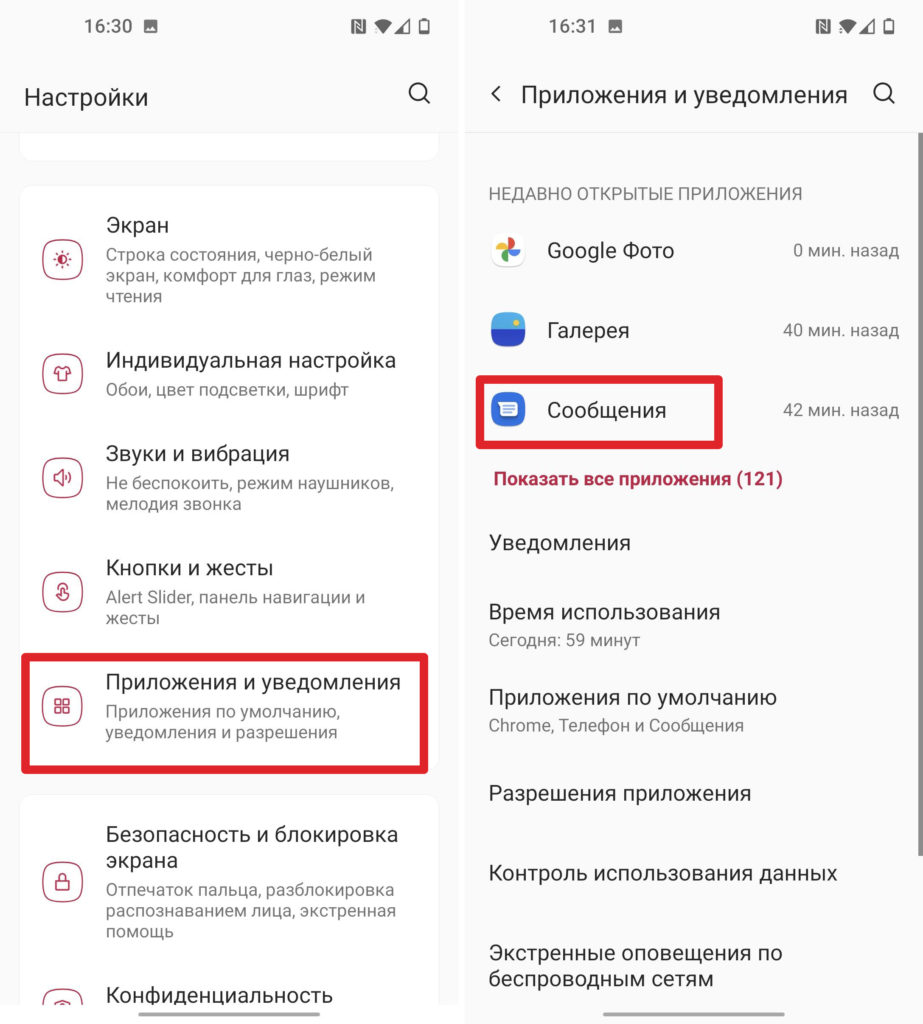 Место, где хранятся все ваши SMS-сообщения и куда вы отправляете свои письма, — это интегрированное приложение. Есть вероятность, что в этой программе произошел сбой. В «Настройках» найдите подраздел «Приложения и уведомления». Нажмите «Показать все приложения» и в списке найдите программу — «Сообщения». Идите по значку, так как имя может отличаться на разных телефонах.