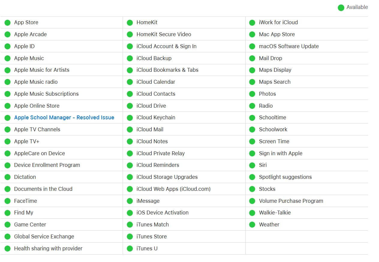 Страница состояния систем Apple позволяет узнать, все ли службы работают корректно