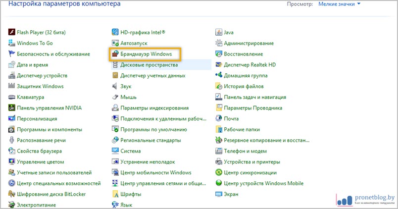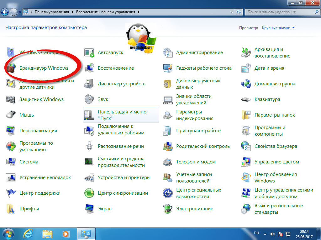Выбираем в правом верхнем углу, классический вид с крупными значками и щелкаем по значку брандмауэра.