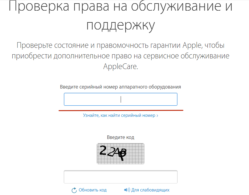 Шаг 4. Введите серийный номер устройства в специальное окно, затем введите код с картинки.![]()