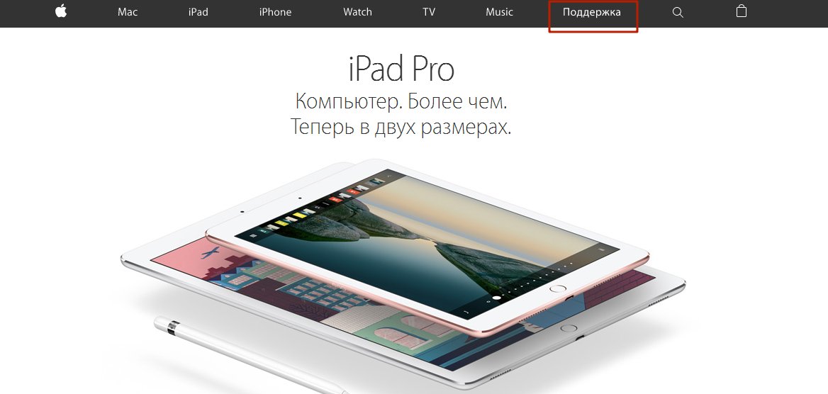 Шаг 2. Заходим на http://www.apple.com/ru/ и выбираем вкладку «Поддержка» в правом верхнем углу».