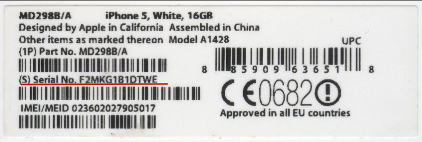 Шаг 1. Найдите серийный номер устройства на упаковке; Он должен быть расположен на задней стороне коробки между IMEI и номером партии (номером детали). Серийный номер состоит из 11 или 12 знаков (цифр и букв).