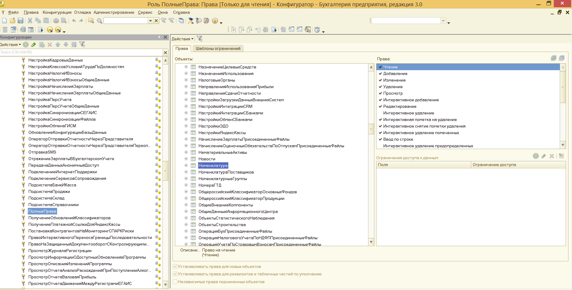 Если вы делаете настройку прав доступа в 1С, рекомендуем получить консультацию специалиста 1С в вашем городе. Контакты здесь.