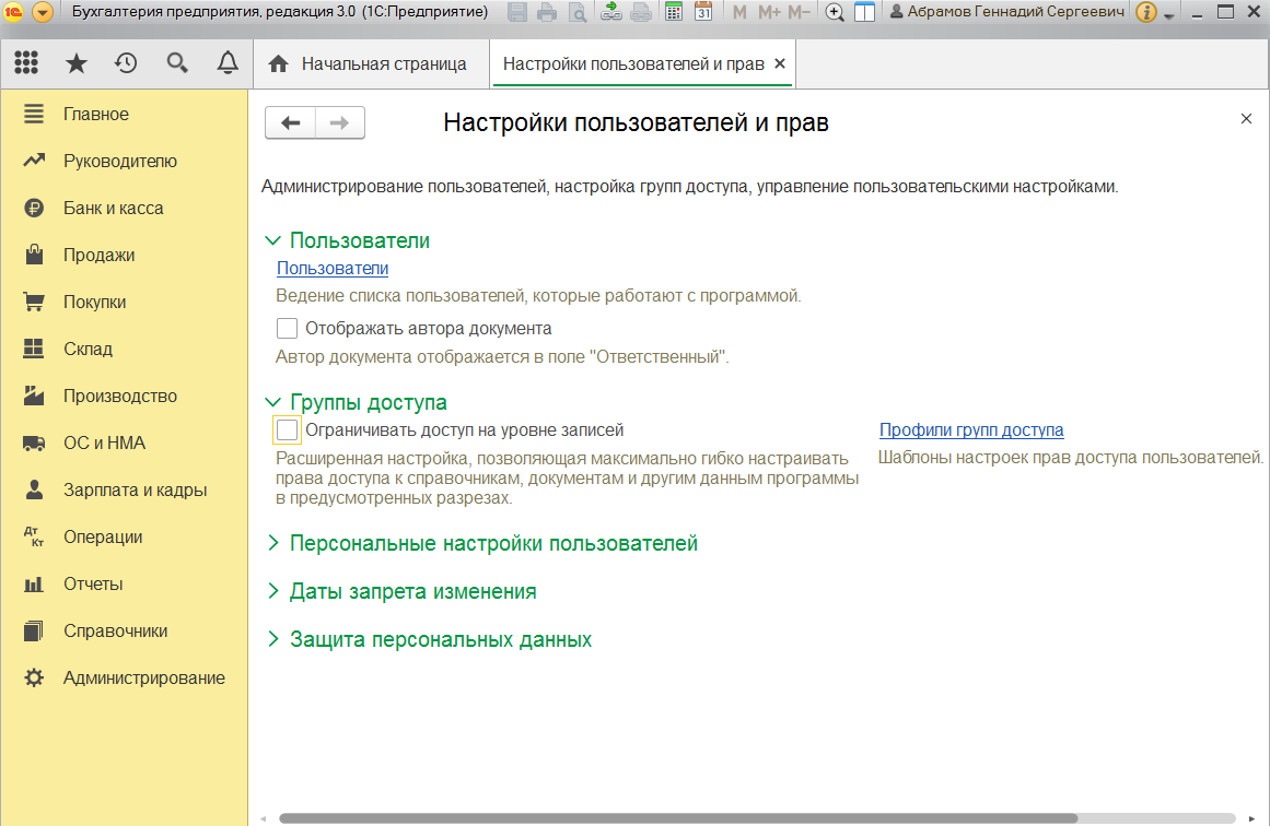Расскажем, как настроить права доступа в 1С на примере программы «1С:Бухгалтерия 8 редакция 3.0»