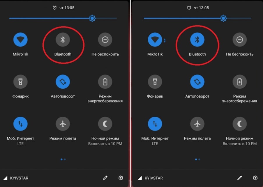 Включаем Bluetooth. Нужный ярлык есть в шторке, вызываемой свайпом сверху вниз в верхней части телефона. Один щелчок включает Блютуз.