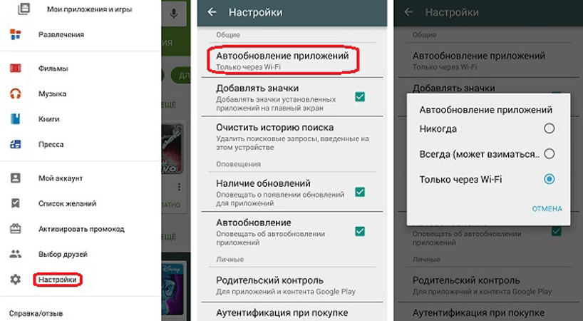 Для отключения автообновления приложений выполните последовательность действий в Google Play