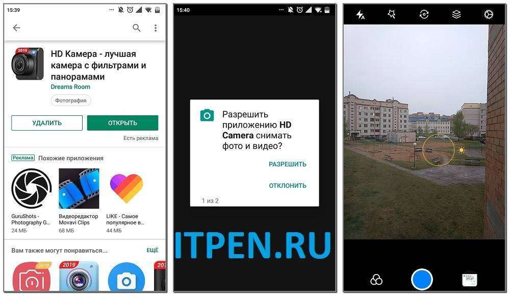 Очень простое приложение, которой прекрасно справляется со своей задачей. Кстати, «вес» программы всего 1.4 МБ. При первом открытие нужно нажать кнопку «Разрешить». Теперь можно переходить к съёмке. Для фокусировки просто кликните по нужному объекту на дисплее.